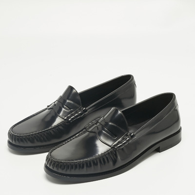 Celine’s black leather penny loafers capture the label’s Parisian minimalism. Impeccably crafted, they feature clean lines and timeless detailing that ensure endless versatility. Whether styled with tailored trousers or cropped denim, they add quiet polish to everyday dressing.