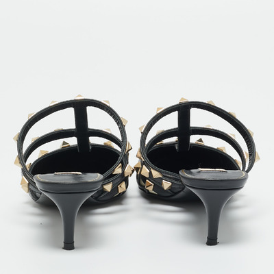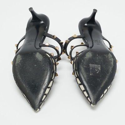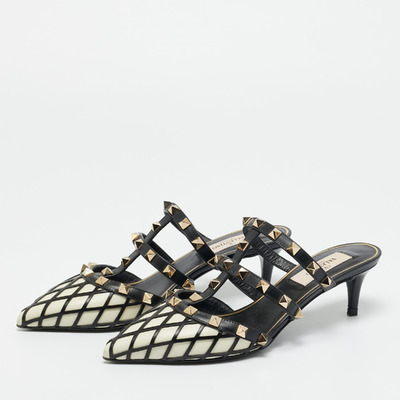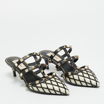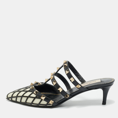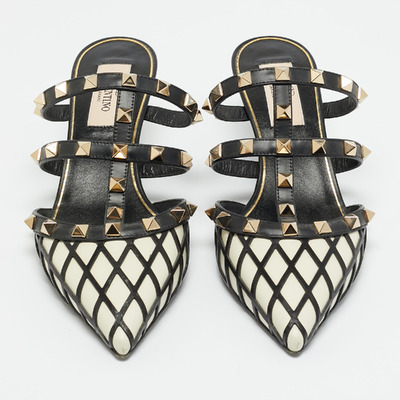 Valentino White/Black Leather Rockstud Strappy Flat Mules Size 35 1224985 (чёрный, lpn31028679)
