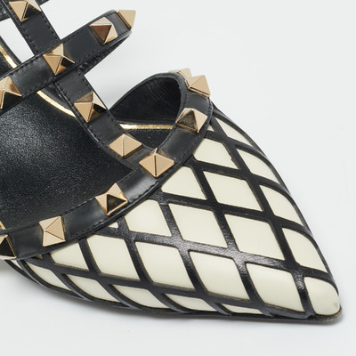 Valentino White/Black Leather Rockstud Strappy Flat Mules Size 35 1224985 - 1