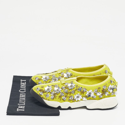 Dior Yellow Mesh Crystal Embellished Fusion Slip On Sneakers Size 39.5 1225039 (зелёный, lpn31028697)