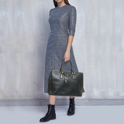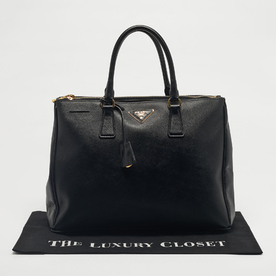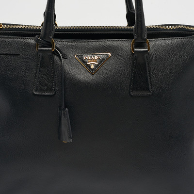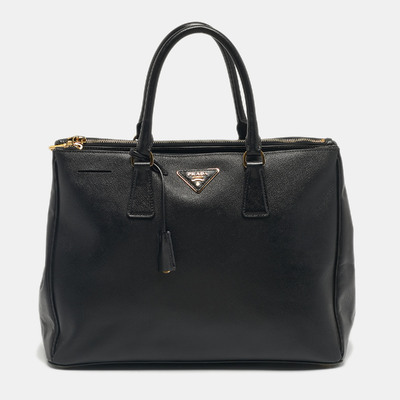 The Galleria tote is one of Prada’s most enduring icons, here presented in black Saffiano Lux leather. Renowned for its structure and durability, this large double zip design offers ample space without compromising refinement. Dual compartments ensure organized storage, while gold tone accents and clean lines underscore Prada’s minimalist sophistication. A work to weekend essential, it reflects the house’s balance of practicality and understated luxury.