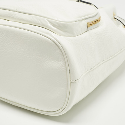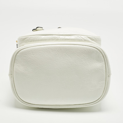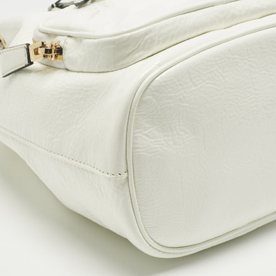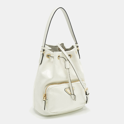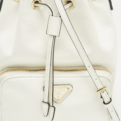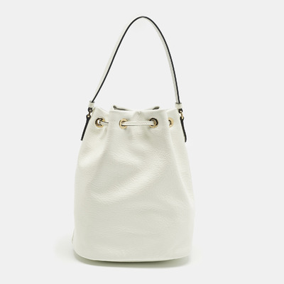 Prada infuses modern minimalism with a bold touch in the Duet bucket bag. Crafted from glossy white patent leather, the silhouette is clean yet striking, with dual handles and a drawstring closure for effortless use. Reflecting the house’s flair for sleek urban design, it’s a versatile bag that pairs as easily with tailoring as with weekend denim, embodying Prada’s ability to blend practicality and polish.