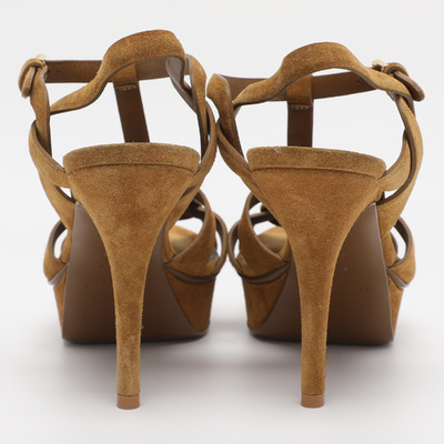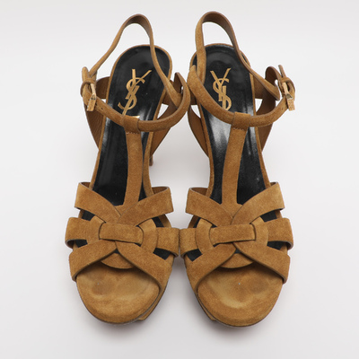 These Saint Laurent Tribute sandals come in rich mustard suede with the brand’s signature interwoven straps. The elevated platform design offers height without sacrificing comfort. A stylish pop of color for both casual and dressy summer looks.