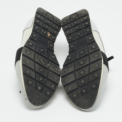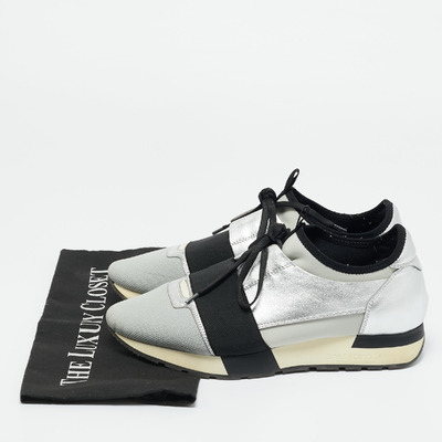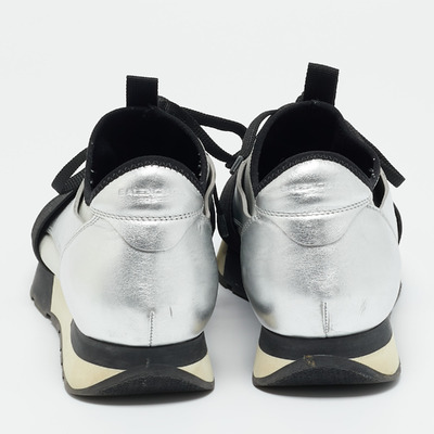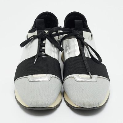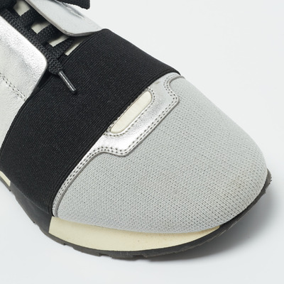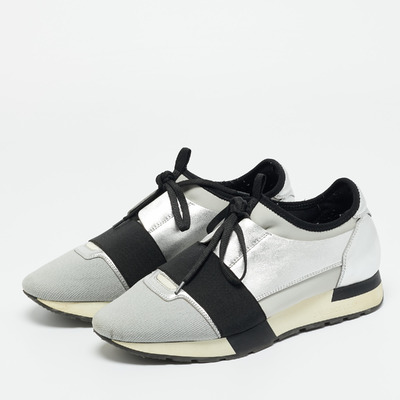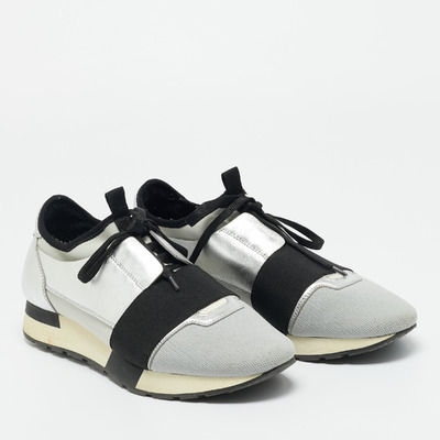 Balenciaga’s Race Runners mix sport with edge—silver leather panels meet breathable mesh and elastic straps for a look that feels athletic yet luxe. Finished with cushioned soles and lace up detail, they’re built to keep pace with both city strides and casual moments.
