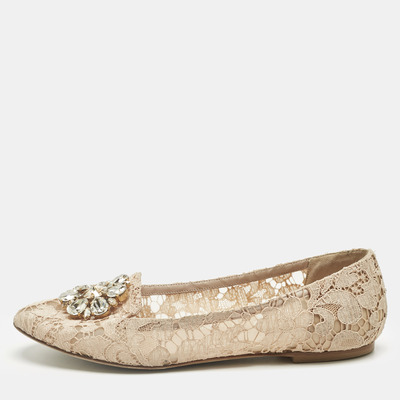 Dolce&Gabbana Beige Lace Crystal Embellish Ballet Flats Size 39 1224785 (бежевый, lpn31028771)