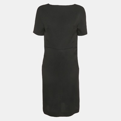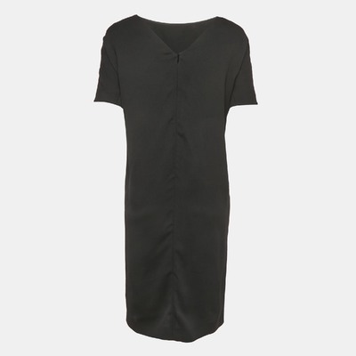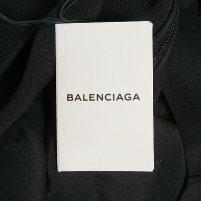 Balenciaga translates minimalism into dramatic form with this black crepe shift dress. Its clean cut and understated detailing highlight the maison’s architectural approach to fashion. Perfect for day to night wear, it offers a canvas for styling with bold accessories or left sleek for pure sophistication.