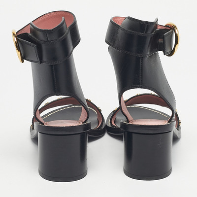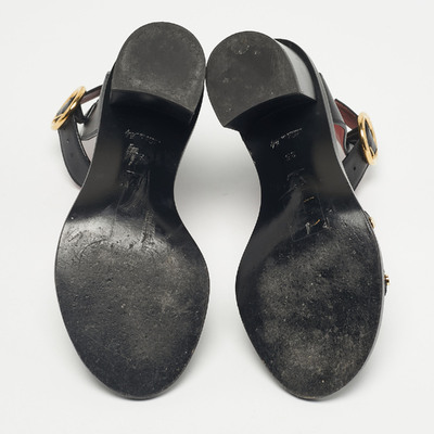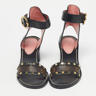 These Louis Vuitton sandals combine black and brown monogram canvas with leather straps, finished with a high ankle closure. Elevated on block heels, they easily slip into both day and evening styling.