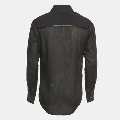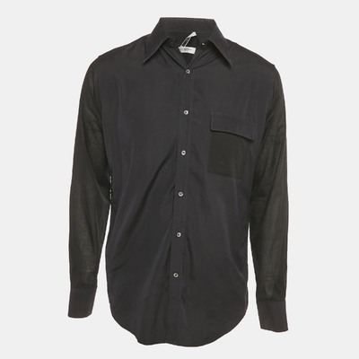 This Saint Laurent shirt features a refined paneled cotton design in classic black. Tailored for a modern fit, it offers a sharp yet understated aesthetic. Perfect for layering or wearing solo for effortless Parisian style.