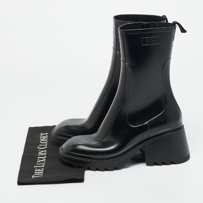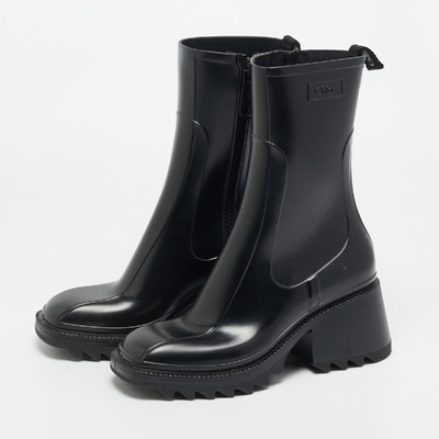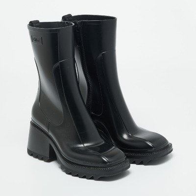 The Chloé Betty rain boots offer practicality with Parisian charm. Crafted in durable black rubber with a chunky sole, they deliver weather ready functionality with high fashion appeal.