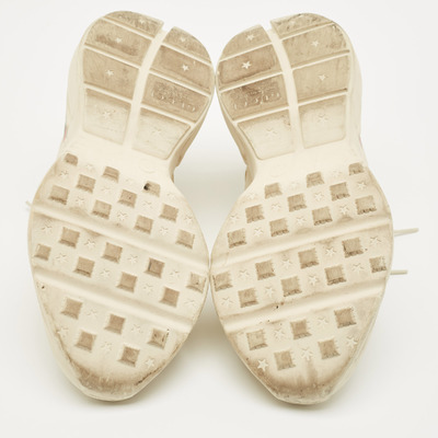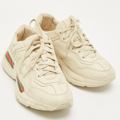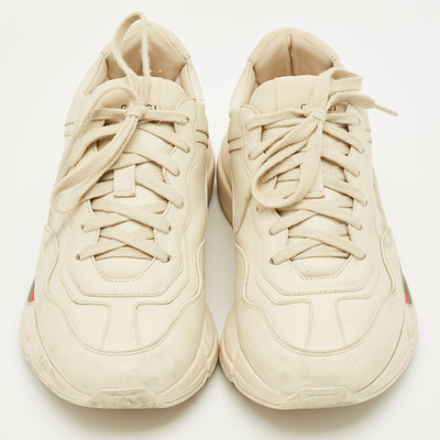 Chunky yet refined, Gucci’s Rhyton sneakers come in smooth cream leather with exaggerated soles. The silhouette nods to retro athletic wear while staying firmly in luxury territory.