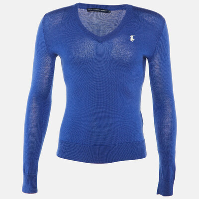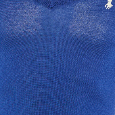 Ralph Lauren Sports Blue Logo Embroidered Wool V-Neck Sweater S 1224646 (голубой, lpn31028834)