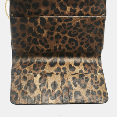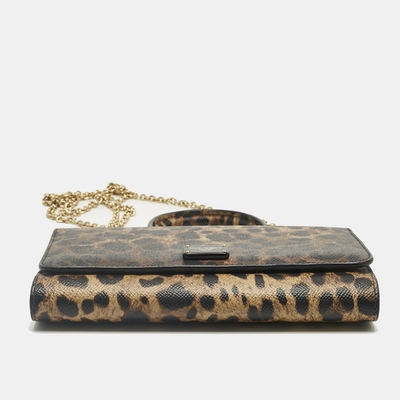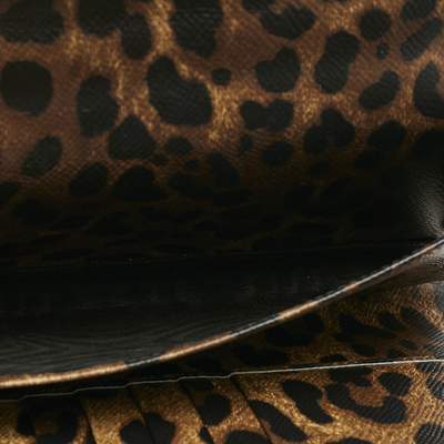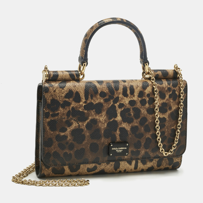 Dolce and Gabbana translates its signature feline print into this Miss Sicily Von wallet on chain. Crafted from coated canvas in beige and black tones, it blends bold personality with compact elegance. Both accessory and statement, it exemplifies the Italian house’s flair for turning everyday essentials into glamorous icons.