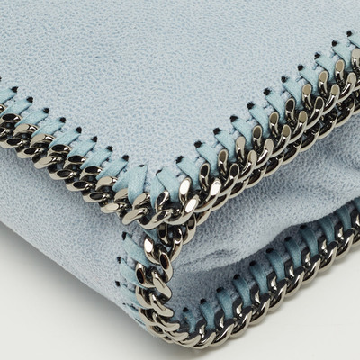 The Falabella crossbody by Stella McCartney redefines sustainable luxury in light blue faux suede. Detailed with the house’s iconic whipstitch chain, it captures a modern balance of edge and sophistication. Compact and stylish, it is both eco conscious and fashion forward, reflecting McCartney’s unwavering commitment to responsible design.