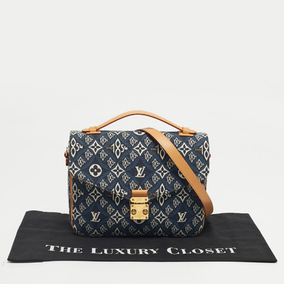 Crafted in Louis Vuitton’s iconic Since 1854 jacquard fabric, this Pochette Metis bag blends heritage motifs with modern structure. The deep blue tones and sleek leather trims add a refined touch to its compact silhouette. Finished with a gold tone S lock, it’s the perfect crossbody for everyday sophistication.