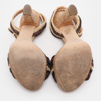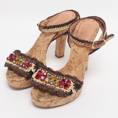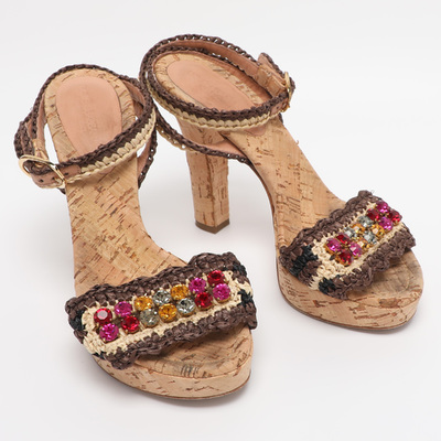 Dolce&Gabbana Beige/Brown Straw Crystal Embellished Ankle Strap Sandals Size 38 1224663 - 1
