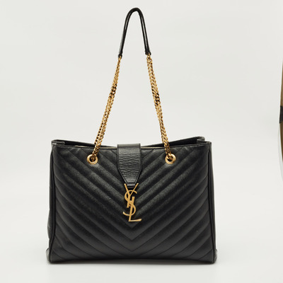 Saint Laurent Black Matelasse Leather Cassandre Shopper Tote 1224630 - 1