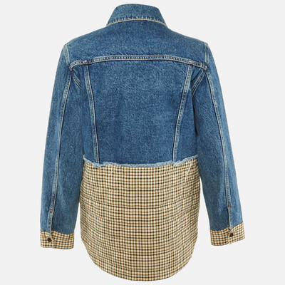 Sandro Blue Plaid Print Denim Jacket S 1224603 (голубой, lpn31028881)