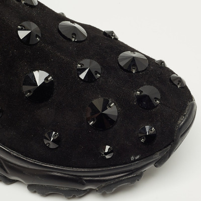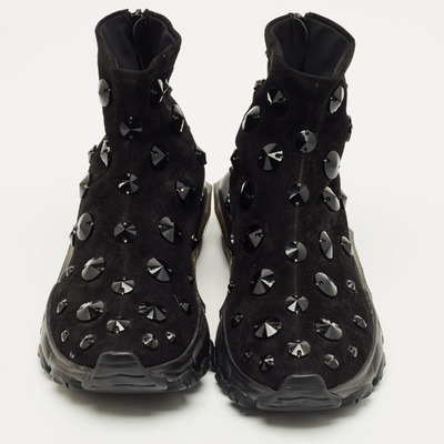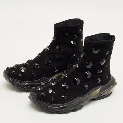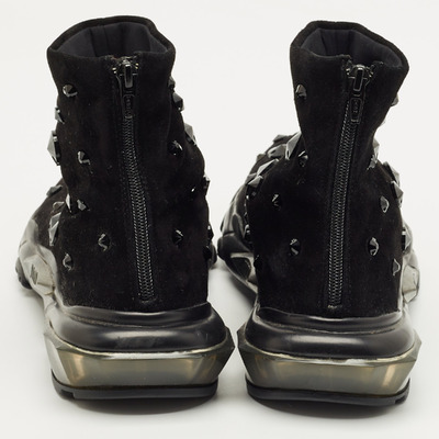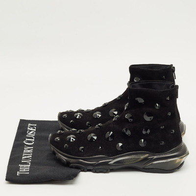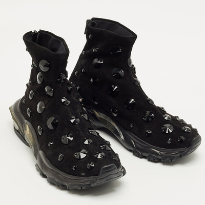 These preloved Valentino sneakers bring evening level sparkle into streetwear. Crafted in black suede, they’re detailed with crystal embellishments that turn a sporty high top into a glamorous statement.