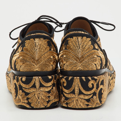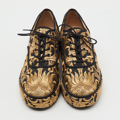 Tory Burch fuses opulence with edge in these Arden oxfords, crafted in black and gold brocade. The platform design adds modern height while honoring traditional menswear codes. Ideal for styling with tailored separates or statement skirts, they embody contemporary sophistication with a touch of bold glamour.