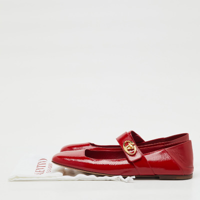 Valentino brightens the Mary Jane with glossy red patent leather. The strap is accented by the VLogo Locker detail, adding a bold signature touch to the classic shape.