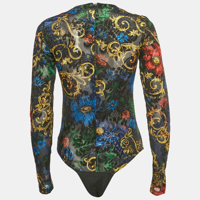 Versace Jeans Couture Black Baroque Mesh & Velvet Sheer Bodysuit S 1224162 (чёрный, lpn31028966)