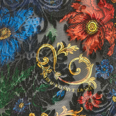 This Versace Jeans Couture bodysuit layers baroque motifs across sheer mesh with velvet accents. Fitted to the body, it elevates chic tailoring to simple jeans.