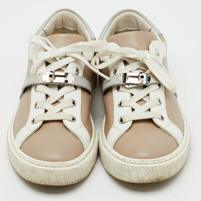Hermès redefines casual luxury with these Day sneakers in beige and white leather. Minimalist lines and meticulous construction showcase the house’s dedication to understated refinement. Perfect for pairing with denim or relaxed tailoring, they bring ease without sacrificing elegance. A versatile essential crafted with the timeless appeal synonymous with Hermès.