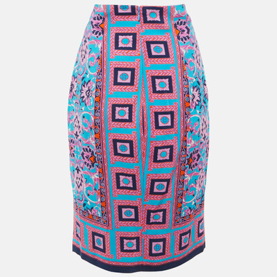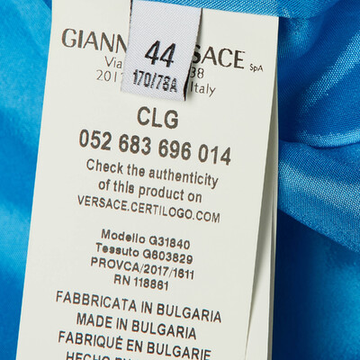 Cut from crepe, this Versace Collection skirt falls to midi length in blue printwork. The structured fabric holds its line while the print adds vibrancy.