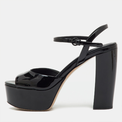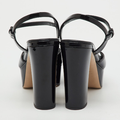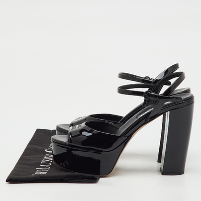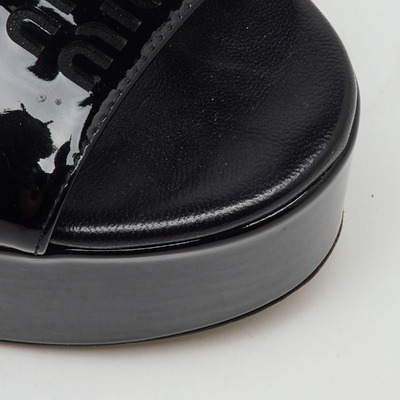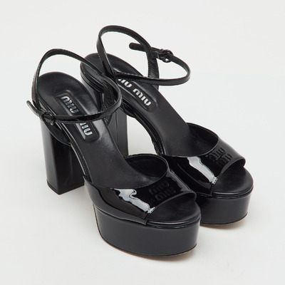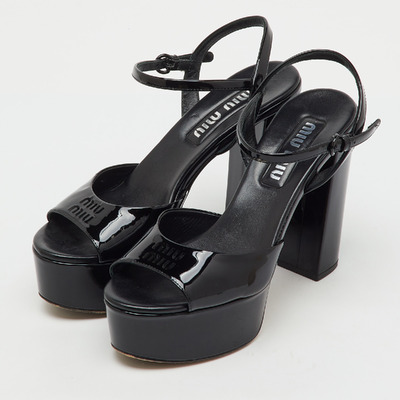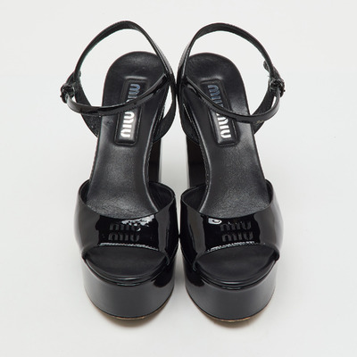 Miu Miu Black Patent Leather Block Heel Platform Sandals Size 37.5 1224109 (чёрный, lpn31028976)