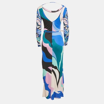 Emilio Pucci Multicolor Printed Jersey Maxi Dress S 1223708 (lpn31028981)