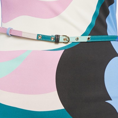 This Emilio Pucci maxi dress showcases the brand’s signature vibrant print on stretchy jersey fabric. Flowing and colorful, it makes a striking statement with minimal effort. Ideal for resort wear or bold daytime looks.
