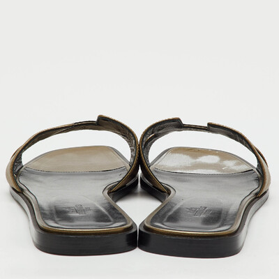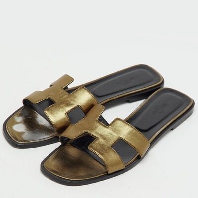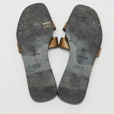 Hermes Brown Metallic Leather Oran Flat Slide Sandals Size 42 1224081 (коричневый, lpn31028986)