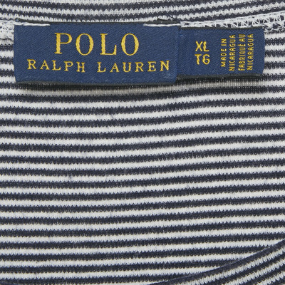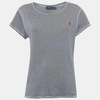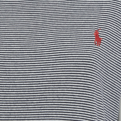 In soft jersey, this Ralph Lauren T shirt carries a blue and white striped design and the house logo in red on the front. Simple and easy to wear, it’s a casual staple.