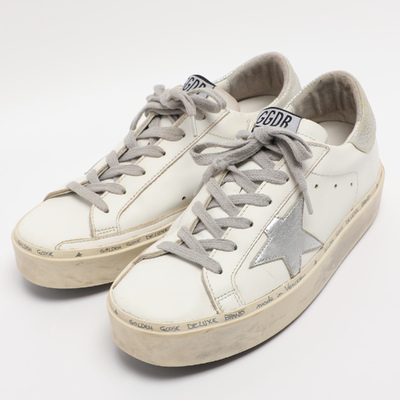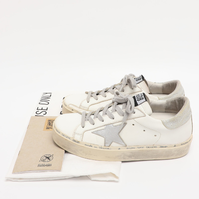 Golden Goose White/Silver Leather Hi Star Lace Up Sneakers Size 36 1224251 - 1