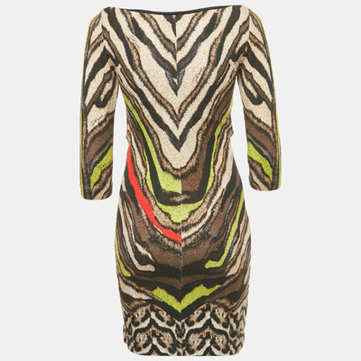 Cavalli prints bold animal patterns across stretch jersey, shaping it into a body skimming mini dress. Long sleeves balance the length, keeping it striking yet wearable.