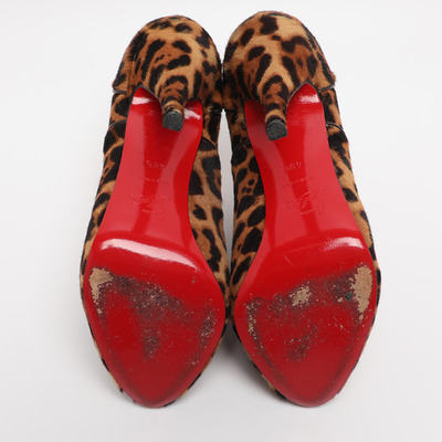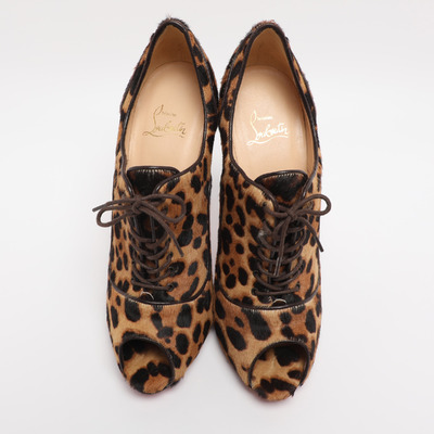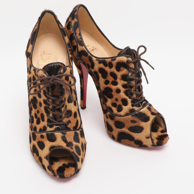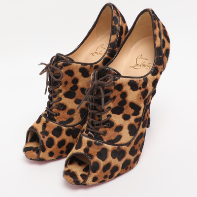 Christian Louboutin Leopard Print Pony Hair Lady Derby Peep Toe Booties Size 40.5 1224258 (коричневый, lpn31029005)