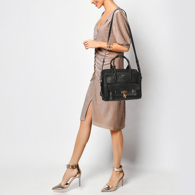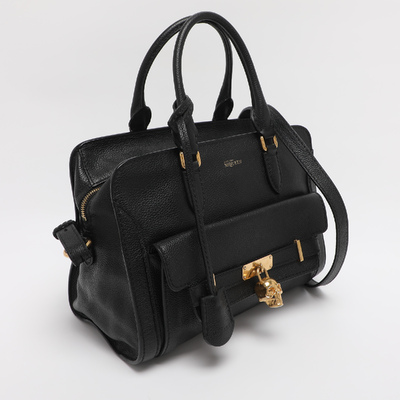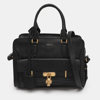 Alexander McQueen’s satchel is both functional and fierce, crafted in black leather and finished with the iconic skull padlock. The structured silhouette carries a gothic allure, balancing practicality with dramatic detailing. Designed for everyday wear, it remains true to McQueen’s rebellious DNA. A powerful accessory, it offers equal parts edge and elegance.