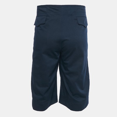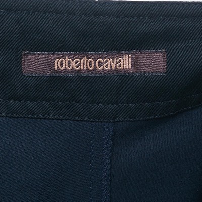 Roberto Cavalli adds a tailored twist to casualwear with these blue gabardine Bermuda shorts. The matching belt enhances the waist for a refined silhouette. A chic option for summer city dressing.