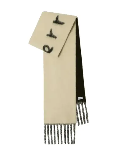 light beige fringed trim logo detailing wraparound style