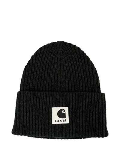 Sacai X Carhartt WIP ribbed logo beanie hat 32260457 (lpn31029208)