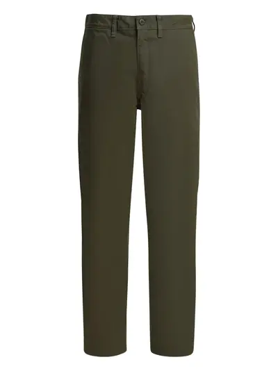 green logo patch buttoned back pocket belt loops button closure topstitching