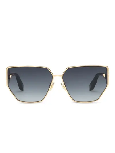 dark grey geometric frame logo plaque These glasses come with a protective case.