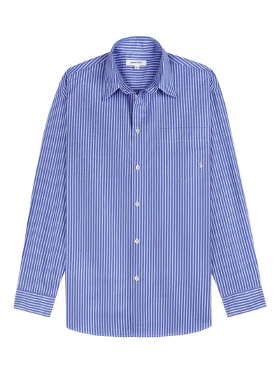 blue striped pattern button fastening long sleeves chest pocket embroidered logo