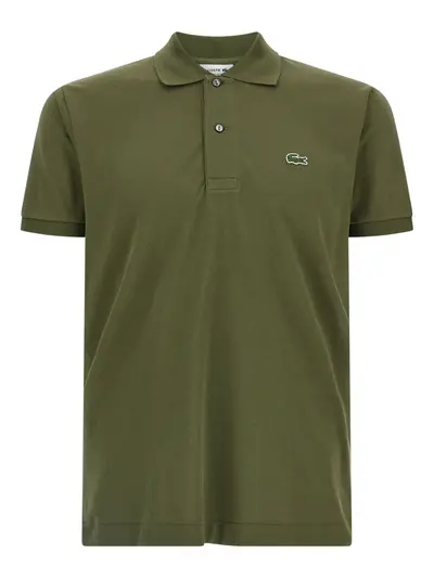 green piqué texture logo patch short sleeves side slits polo collar button fastening