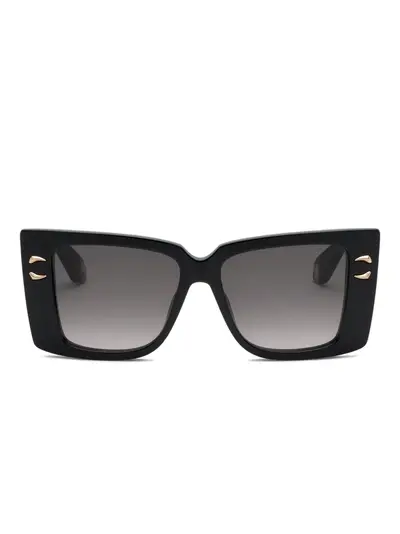 black oversized frame gradient lenses logo plaque oversized arms These glasses come with a protective case.