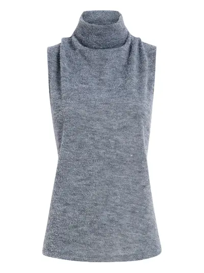 grey roll neck cowl effect sleeveless twisted open back jersey texture straight hem