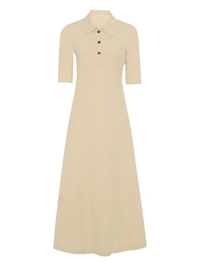 champagne button fastening polo collar elbow-length sleeves A-line skirt