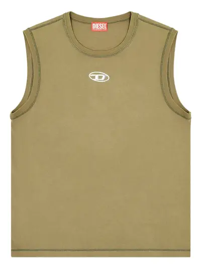 olive green cotton sleeveless round neck straight hem