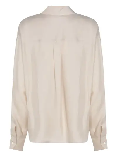 beige button fastening long sleeves classic collar buttoned cuffs silk