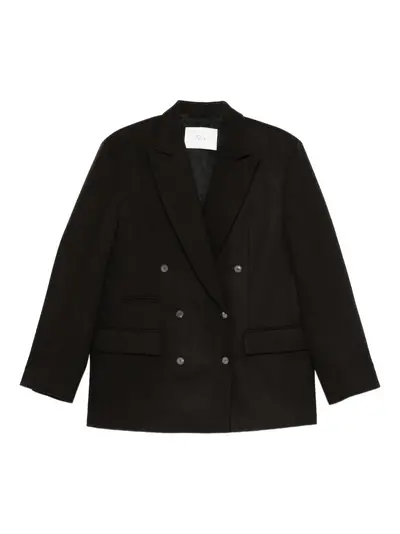 black double-breasted button fastening peak lapels front flap pockets button fastening at cuffs